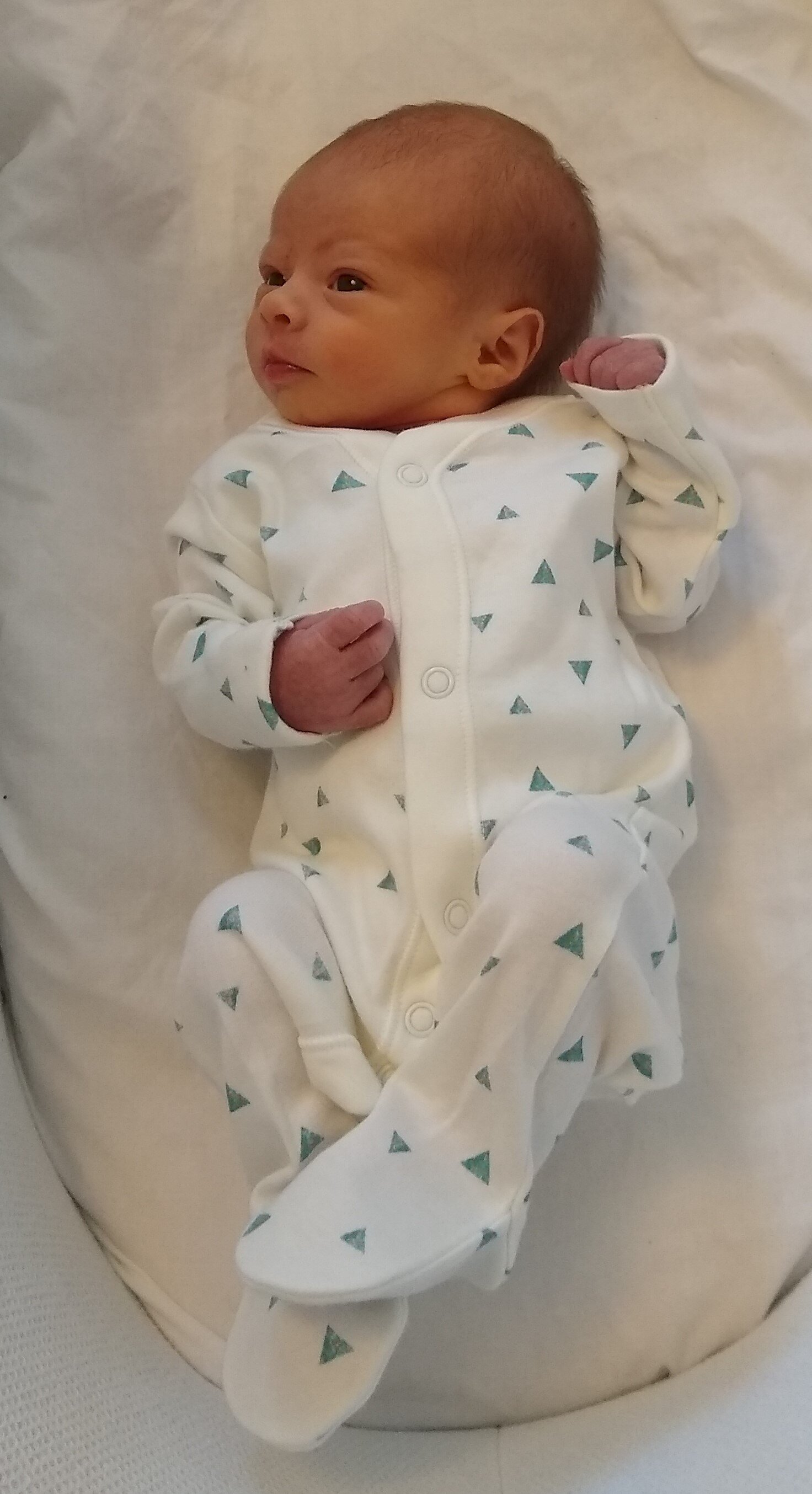 The anesthetist did the epidural so quickly and painlessly, I was amazed, and very soon I had complete relief from the contractions and was able to get some sleep. My impression of the timings from here onwards gets a bit hazy, but I think 4 hours later I was at 6cm. I started to get very shaky and felt cold – I was aware this could be a side effect of the epidural, and the midwife said it can also happen when labour is progressing quickly. At some stage, the team became concerned about the CTG and encouraged me to adopt different positions, and found that lying on my right made the CTG more reassuring. The contractions continued and at another 4 hours, I was at 10cm. At this point I could not feel my contractions at all, so I had to be coached through the pushing. I tried a variety of positions to push in and eventually it was the lithotomy position that was the most effective. It was a very strange sensation pushing down and not being able to feel anything, but the midwife and my husband were amazing at giving me so much encouragement and telling me that the baby was coming.