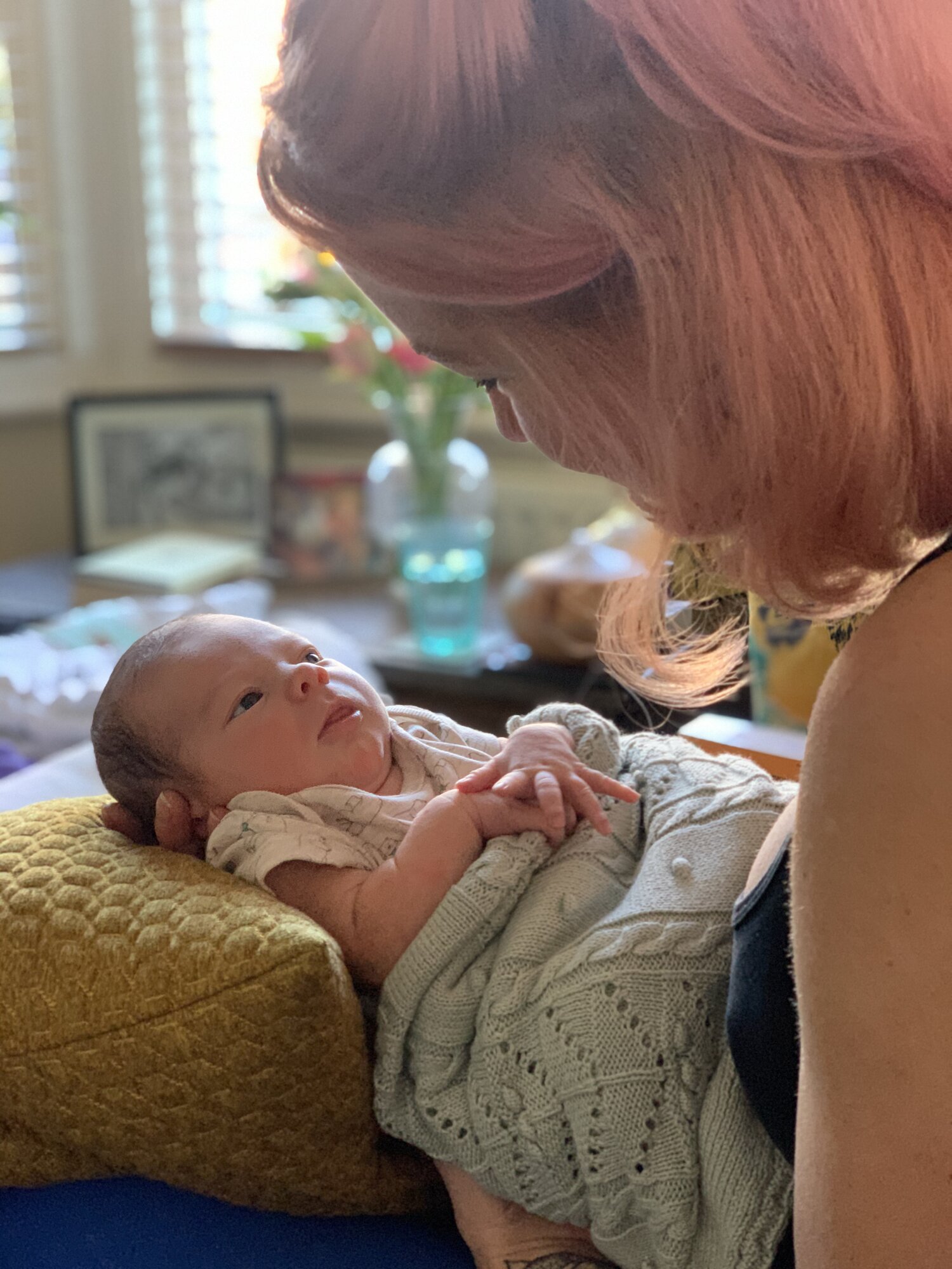 When Cora’s little body was passed to me for skin to skin I was totally overwhelmed with emotion. I'd had a short labour so wasn't exhausted, just instantly in love and a bit in shock that I had done it, that this tiny human had grown inside me and now she was here and we could see her; I cried and was shaking from the adrenaline.